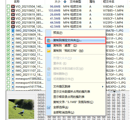 5.恢復(fù)U盤數(shù)據(jù),在掃描結(jié)果中挑選需要恢復(fù)的數(shù)據(jù),然后右擊選中的文件并選擇"復(fù)制到指定文件夾"選項(xiàng),然后就可以根據(jù)軟件提示在電腦硬盤或是其他設(shè)備上設(shè)置文件夾來保存恢復(fù)的數(shù)據(jù)。