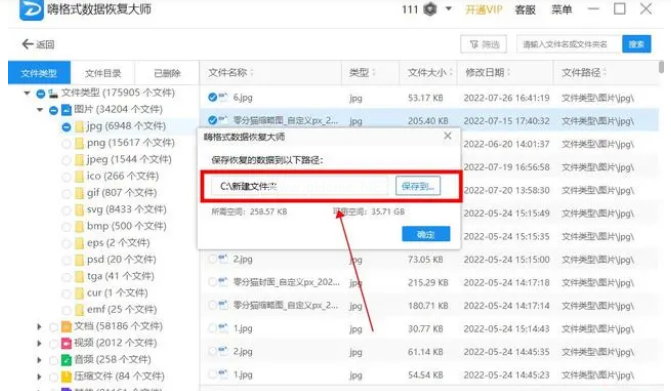 5.點(diǎn)擊之后,根據(jù)提示我們還需要設(shè)置下恢復(fù)文件的保存位置,不可以再保存到U盤中,可以選擇保存在電腦。