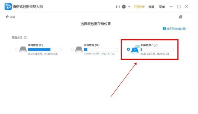 2.選擇好后進(jìn)入選擇位置頁面,點(diǎn)擊外接磁盤,就是我們的U盤。