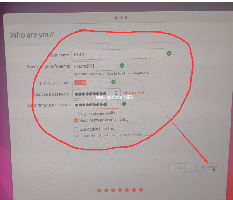 38、輸入用戶名, 計(jì)算機(jī)名, 密碼, 點(diǎn)擊continue