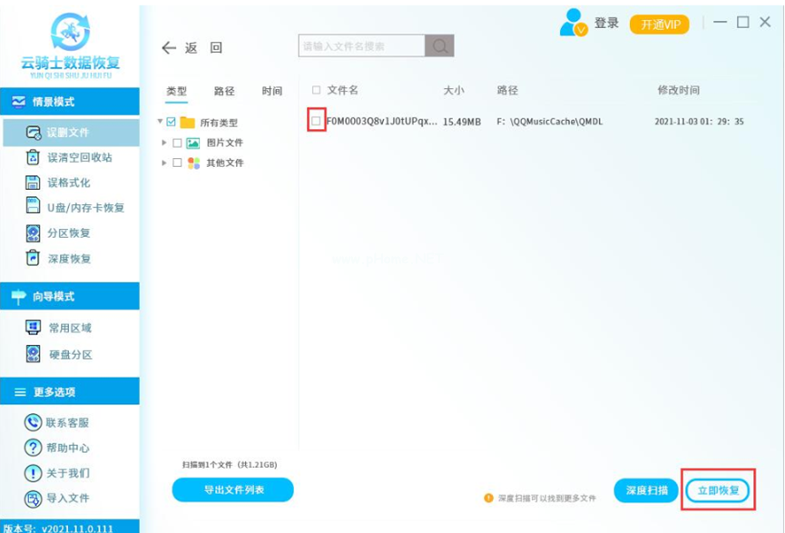 3、選中需要恢復(fù)的文件,點擊立即恢復(fù)。