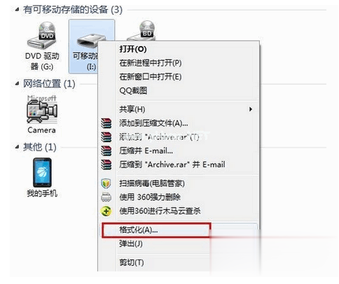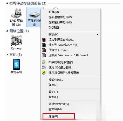 1.右擊“可移動磁盤”,從彈出的右鍵菜單中選擇“屬性”。