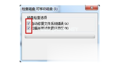 2.接著在打開的窗口中切換至“工具”選項(xiàng)卡,點(diǎn)擊“查錯(cuò) 開始檢查”按鈕,在彈出的窗口中同時(shí)勾選兩項(xiàng),最后點(diǎn)擊“開始”按鈕來檢查并修復(fù)磁盤錯(cuò)誤。修復(fù)完成后,就可以嘗試打開U盤。