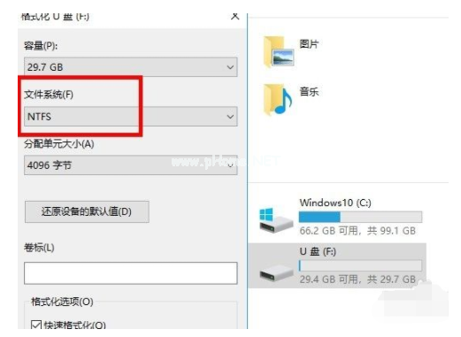 5、將FAT32更改成NTFS,選擇格式化。