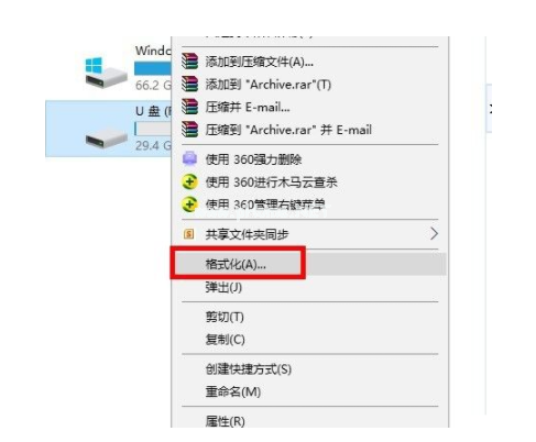 右擊u盤屬性格式化