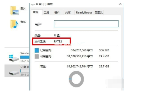 3、這個U盤的文件系統(tǒng)是:FAT32的。我們需要將它變成NTFS的。