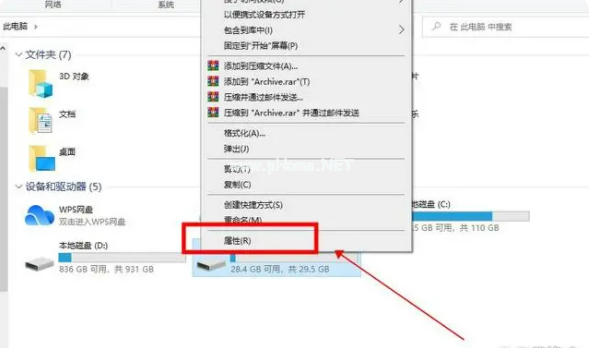步驟2:接著找到U盤圖標(biāo),鼠標(biāo)右鍵點(diǎn)擊U盤,在彈出選項(xiàng)中選擇“屬性”;