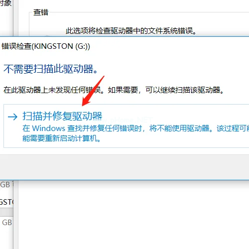 5、點(diǎn)擊“掃描并修復(fù)驅(qū)動(dòng)器”,電腦會(huì)對(duì)U盤(pán)里的文件進(jìn)行掃描和修復(fù)。