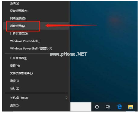 1、修復(fù)u盤的方法,我們首先插入u盤,同時(shí)按下【win+X】快捷鍵,選中【磁盤管理】打開。