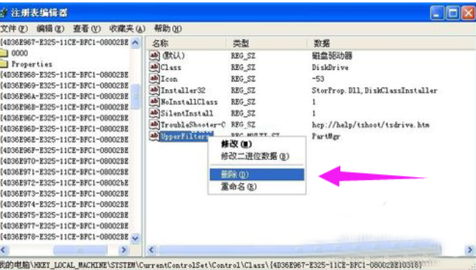 3,右鍵點(diǎn)擊“UpperFilters”和“LowerFilters”,選擇刪除就可以啦。