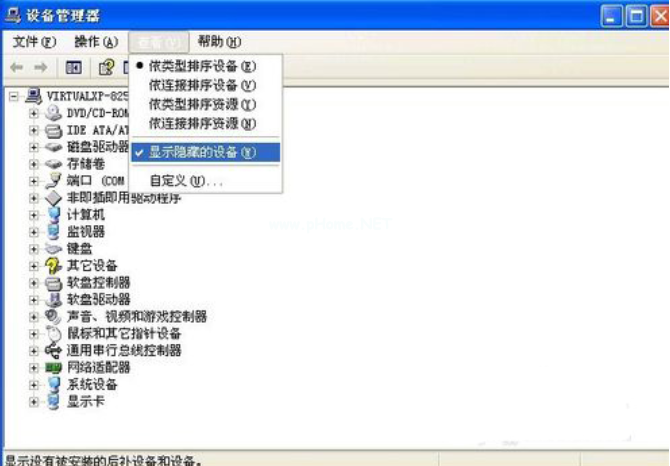 5,我們打開(kāi)設(shè)備管理器,在菜單欄點(diǎn)擊“查看” - “顯示隱藏的設(shè)備”。
