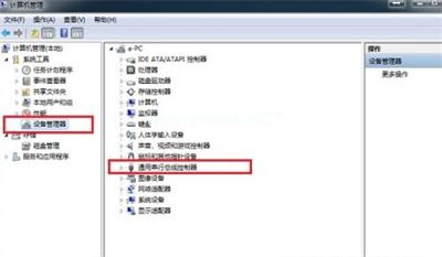 2、進去計算機管理界面之后,點擊設(shè)備管理器,選擇“通用串行總線控制器”。