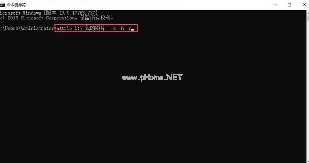2、接著輸入命令:attrib L:\"我的圖片" -s -h -r(其中大寫字母L是我的u盤盤符)。