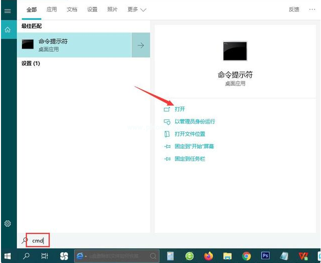 1、小編以恢復(fù)L盤“我的圖片”文件夾為例,點(diǎn)擊左下角的搜索按鈕,在搜索框中輸入cmd,啟動(dòng)MS-DOS窗口界面。