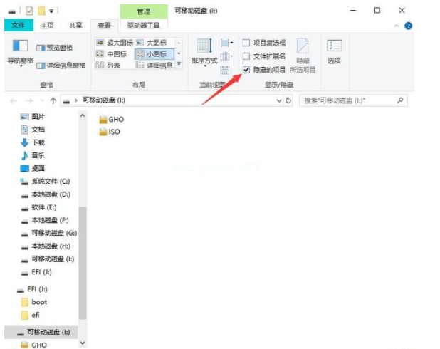 2、接著找到隱藏的項(xiàng)目,打鉤。