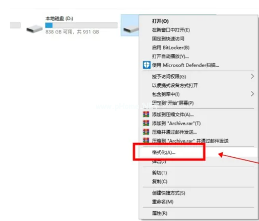 2、鼠標右鍵U盤,點擊“格式化”即可成功刪除U盤所有文件。