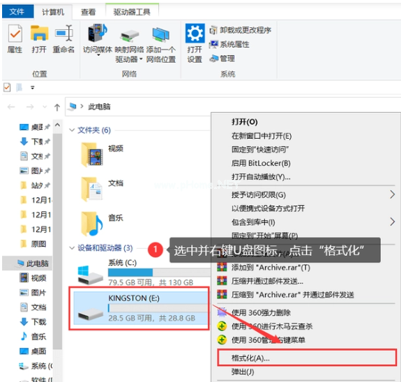1、同樣是雙擊打開【此電腦】圖標(biāo),右鍵點擊U盤,點擊欄目下的【格式化】;