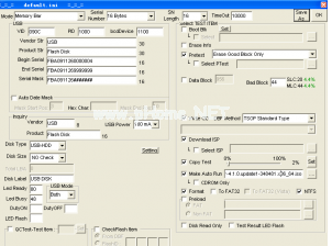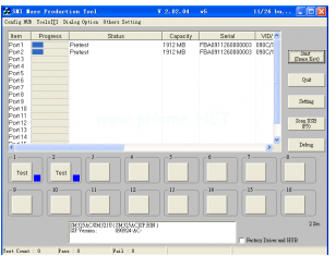知道自己u盤的芯片信號的話,那么就到網(wǎng)絡(luò)上找對應(yīng)的量產(chǎn)工具,這里我已經(jīng)有了適合本u盤使用的量產(chǎn)工具:鼠標點擊下載SMI_I1126.7z,工具運行后如圖2所示,當(dāng)u盤已經(jīng)插入時將在對應(yīng)的地方以顏色表示.