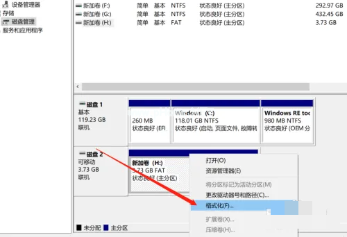 5、點擊鼠標右鍵顯示出菜單,在菜單中找到格式化功能項并點擊打開。