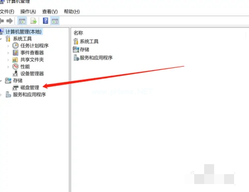 3、在管愁久芬理頁面中左側(cè)菜單欄中找到磁盤管理并點擊打開。