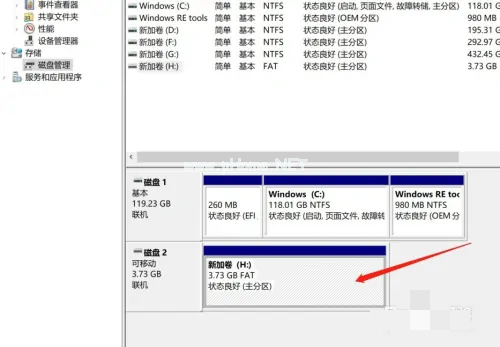 4、在磁盤區(qū)域找到u盤盤符并點擊選中。