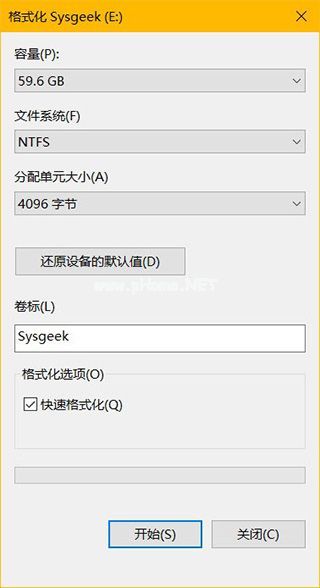 3、選項都確定好之后,點擊「開始」就會立即開始格式化過程,勾選「快速格式化」則不會對壞扇區(qū)進行掃描,如果你的存儲或 U 盤有故障,可以取消該選項讓 Windows 10 進行徹底掃描。格式化完成之后,會收到格式化完畢的提示。