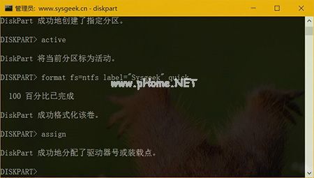 8、格式化完成之后,使用 assign 命令自動為 U 盤分配一個盤符即可使用了。