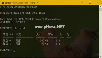 3、執(zhí)行 list disk 命令查看當(dāng)前 PC 連接的磁盤。