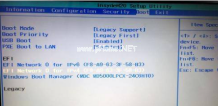 4、在boot選項(xiàng)中進(jìn)行設(shè)置legacyonly模式。