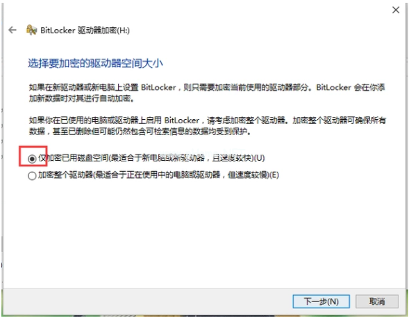 6.勾選第一個僅加密已用磁盤,這樣速度較快。