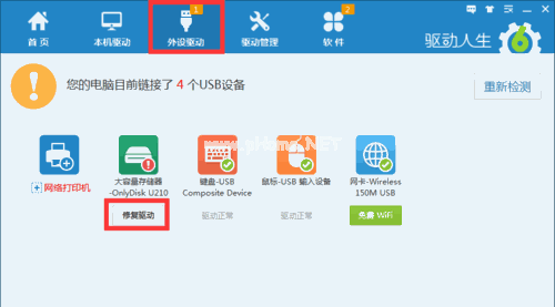 方法二、利用“驅(qū)動(dòng)人生”來識(shí)別并智能安裝U盤驅(qū)動(dòng)