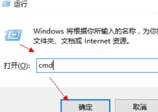 2、然后在如圖所示輸入框中輸入“cmd”,點擊確定