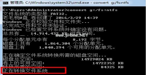 4、回車后,我們會看到當(dāng)前U盤的一些信息,同時提示正在轉(zhuǎn)換文件系統(tǒng)。