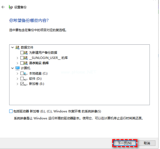 6、選擇您想要備份的文件或分區(qū),這里您可以直接選擇自己的U盤,然后單擊“下一步”。