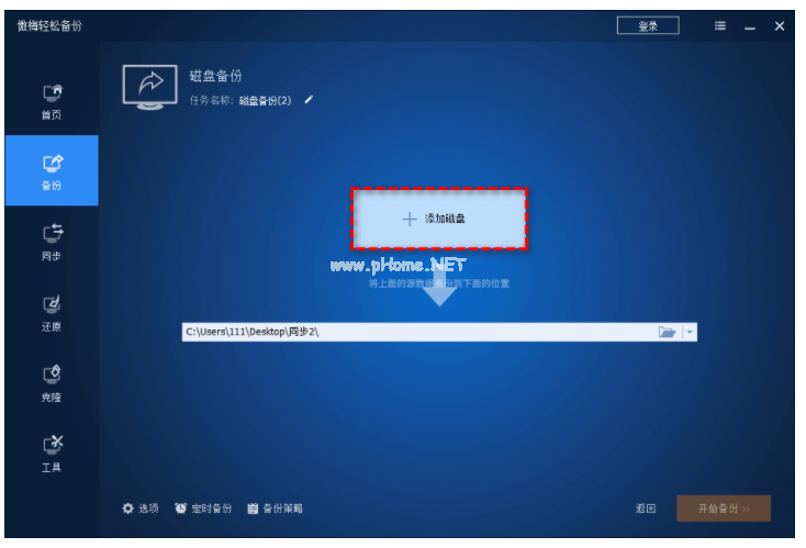 2、 單擊“添加磁盤”以選擇您想要備份的磁盤,也就是您自己的U盤。