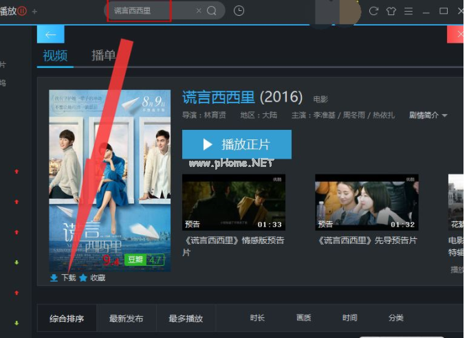 2、視頻資源出來之后,在電影宣傳附近會有一個下載的標(biāo)志,點(diǎn)擊下載按鈕: