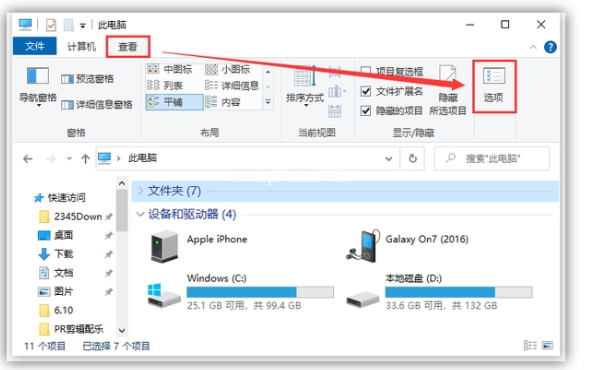 1、其實U盤無法讀取,還有可能是不小心被隱藏了,將U盤插入電腦,點擊此電腦-查看-選項;