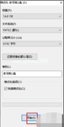 2、在“卷標(biāo)”框中輸入驅(qū)動(dòng)器名稱,根據(jù)需要設(shè)置各項(xiàng),然后單擊“開始”。
