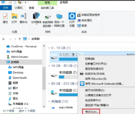 方法二:Win10系統(tǒng)電腦右鍵單擊要格式化的 USB 存儲(chǔ)器格式化U盤