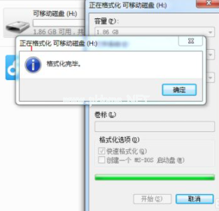 2.格式化完畢,點(diǎn)擊確定。