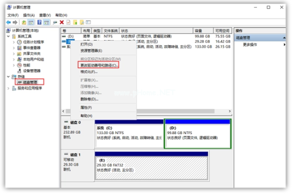 1、這個(gè)方法可以解決大部分U盤無(wú)法識(shí)別的問(wèn)題。進(jìn)入到計(jì)算機(jī)管理界面,在右側(cè)“存儲(chǔ)”的“磁盤管理”下,找到“可移動(dòng)磁盤”,點(diǎn)擊選擇“更改驅(qū)動(dòng)器號(hào)和路徑”;