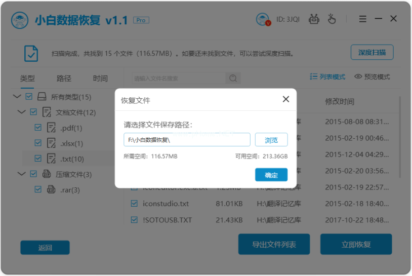 3、掃描完成,即可通過文件類型/大小/路徑等方式快速篩選出所需文件,點(diǎn)擊“立即恢復(fù)”。
