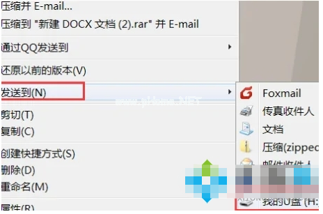 4.鼠標(biāo)右鍵點(diǎn)擊發(fā)送到U盤(pán)即可將文件傳到U盤(pán);