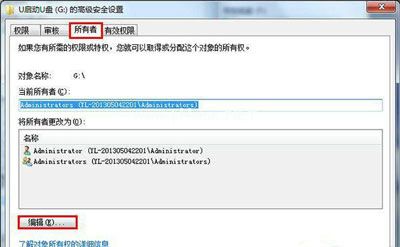3、選擇“所有者”選項(xiàng)卡,單擊“編輯”按鈕,如下圖所示: