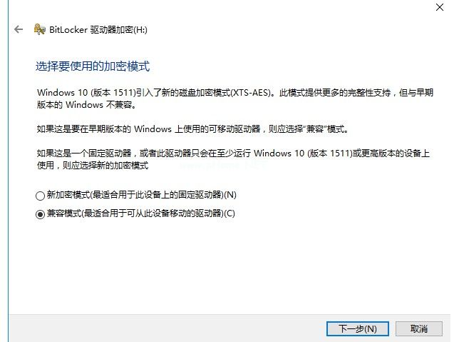 6、給移動(dòng)U盤加密選擇兼容模式。
