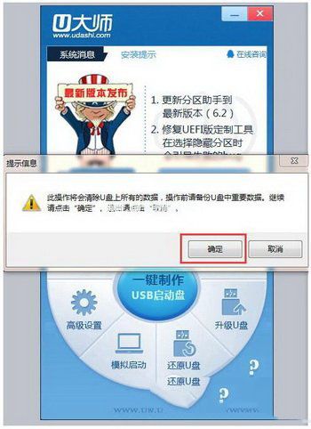 2、點擊“一鍵制作”,確定U盤里沒重要數(shù)據(jù)后點擊“確定”