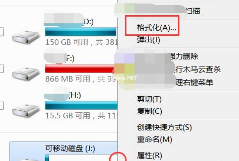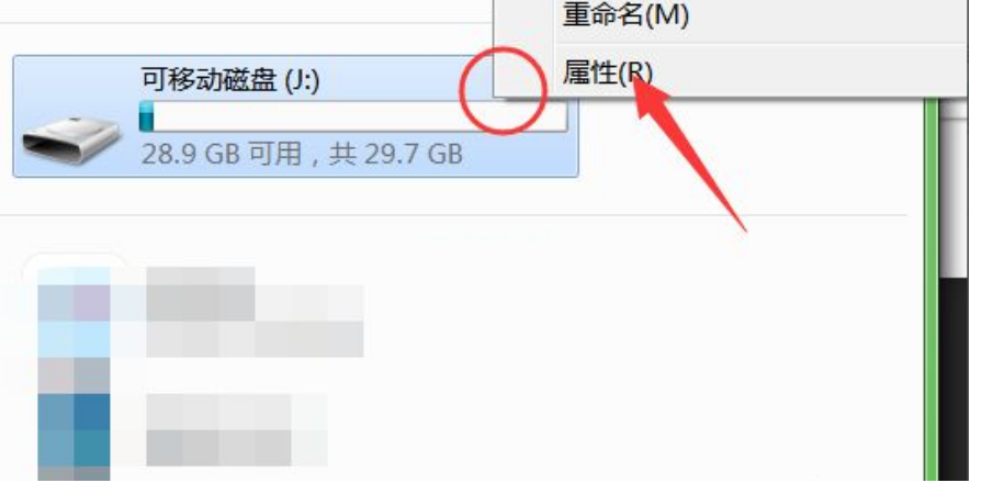 查看磁盤(pán)的屬性。將U盤(pán)內(nèi)文件備份好點(diǎn)擊格式化選項(xiàng)。