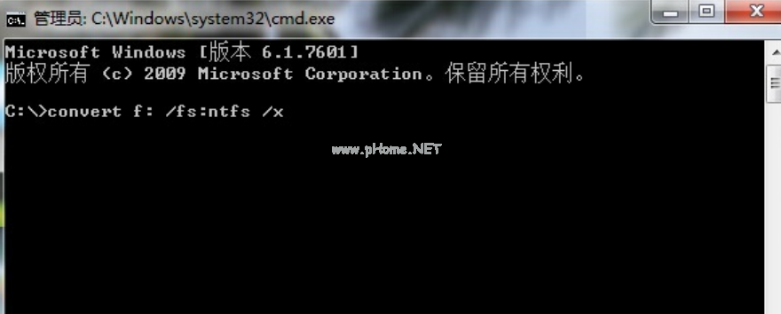 2、輸入 convert f: /fs:ntfs /x