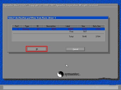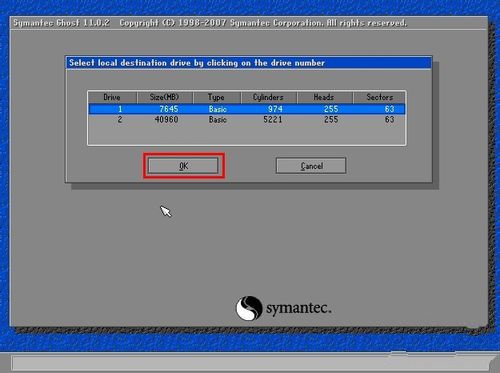在接下來的窗口中選擇“2加載GHOST自帶u盤驅(qū)動(dòng)(手動(dòng))”并在下方“請(qǐng)選擇相應(yīng)的序號(hào)來執(zhí)行任務(wù)__”的橫線處輸入“2”;當(dāng)我們輸入“2”以后,便會(huì)自動(dòng)的跳轉(zhuǎn)到如下圖所示的界面,我們只需要點(diǎn)擊“OK”按鈕即可;