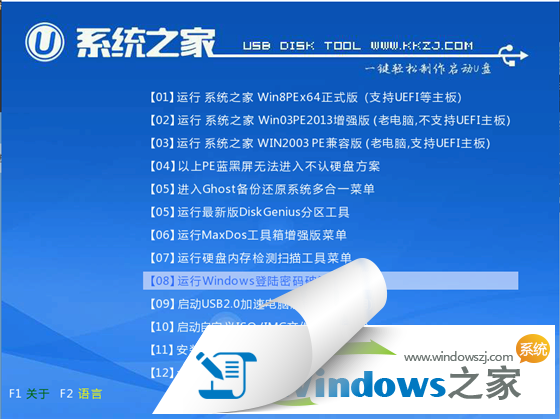 1、U盤裝系統(tǒng)前將U盤設(shè)置為電腦開機第一啟動項。在系統(tǒng)之家PE U盤界面上提供了12大類選項,我們可以使用鍵盤上的“上、下”鍵來調(diào)整進入,我們這里選擇第二項“啟動系統(tǒng)之家U盤Window8PE維護系統(tǒng) ”,進入Win8 PE后開始雨林木風(fēng)u盤系統(tǒng)安裝。